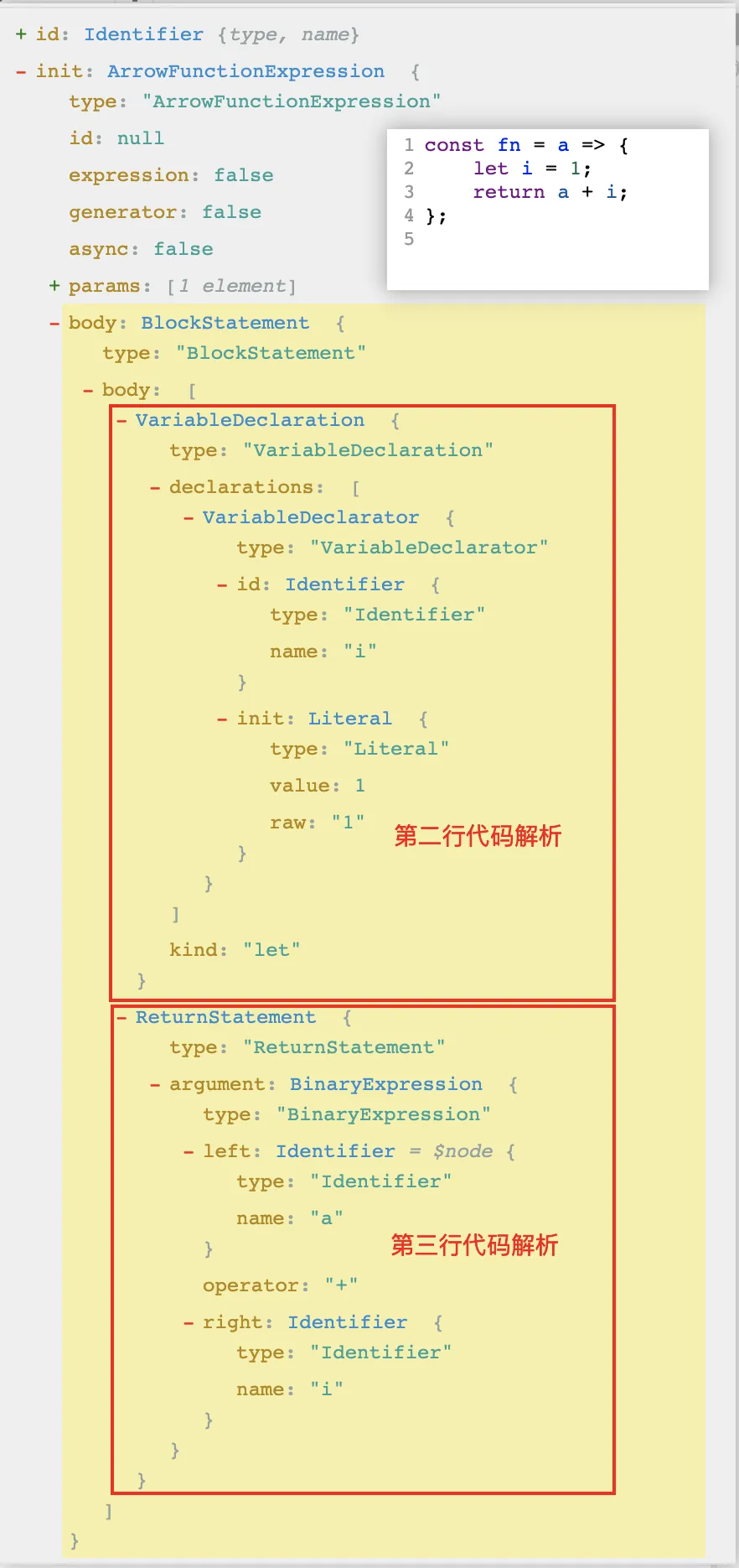 方法是 AST (抽象语法树),简单来说,它就是把代码从 一串字符串 变成 一种结构,如下图: