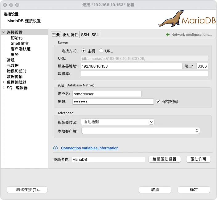 配置MariaDB以允许远程连接: