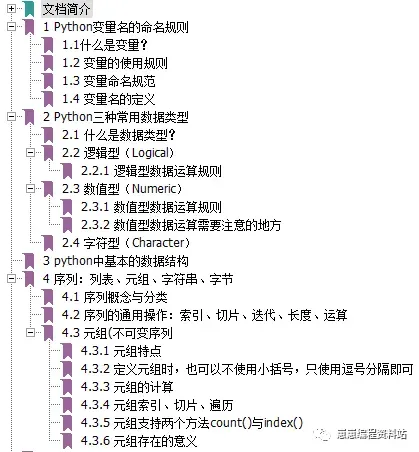 文档共66页,10个章节,采用图文教学式的方法,带你剖析Python基础的重要基础知识点。只要你敢看文档,没有入不了门的Python。