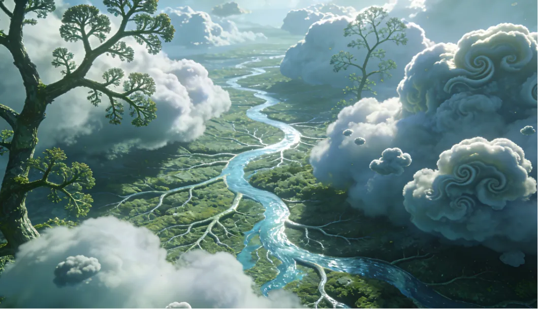 递归(自相似、层次嵌套)在自然界广泛存在,植物的分枝、河流的支流乃至云层的形态都在表现递归的踪迹。人类对其观察、慢慢从直觉中发现规律,经过哲学思辨,逐步走向近现代科学的数学化论证。