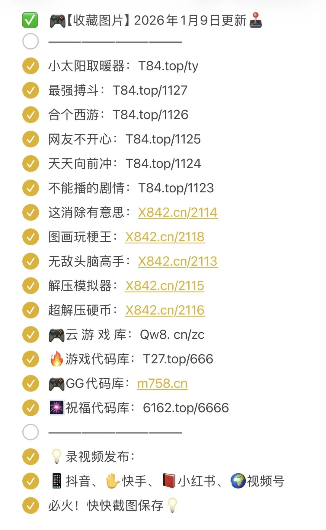 代码库:8055.top/666 GG代码库:m758.cn 小太阳取暖器:T84.top/ty 最强搏斗:T84.top/1127 合个西游:T84.top/1126 网友不开心:T84.top/1125 天天向前冲:T84.top/1124 不能播的剧情:T84.top/1123 这消除有意思:X842.cn/2114 图画玩梗王:X842.cn/2118 无敌头脑高手:X842.cn/2113 解压模拟器:X842.cn/2115 超解压硬币:X842.cn/2116 长按即可复制代码,发送好友即可打开~ |