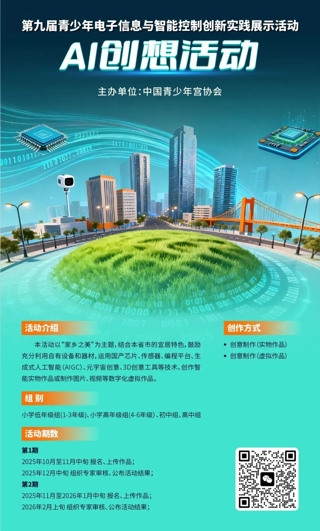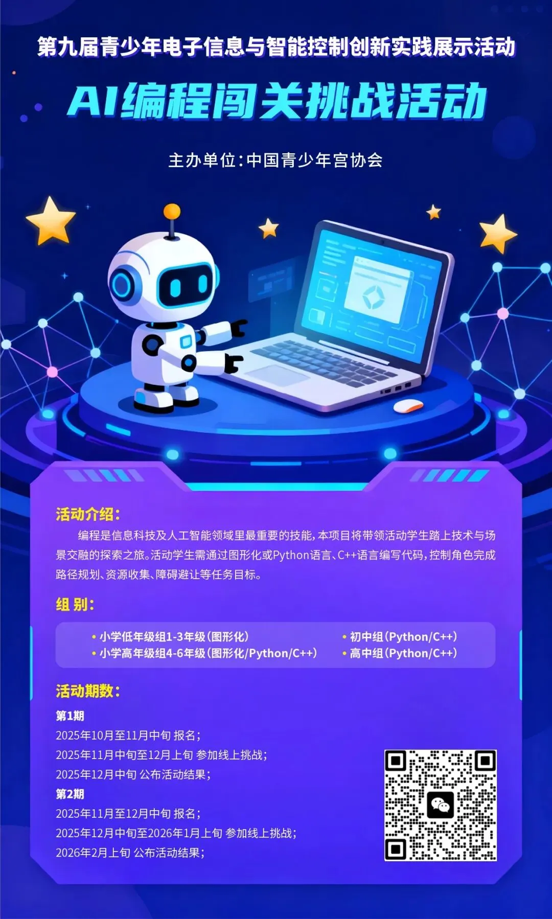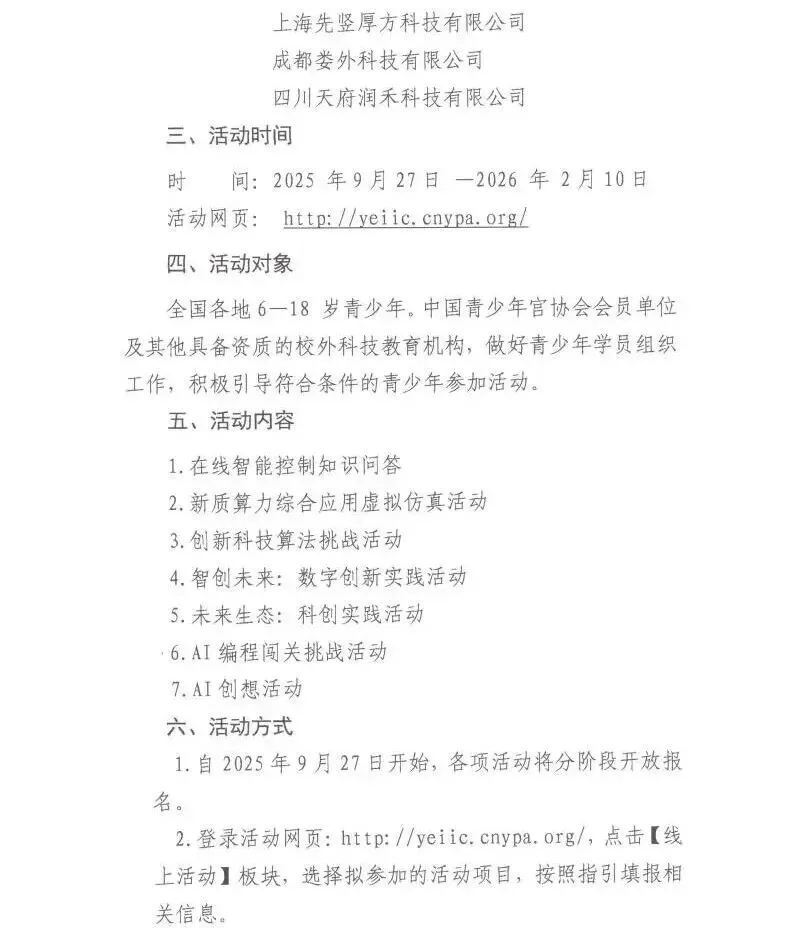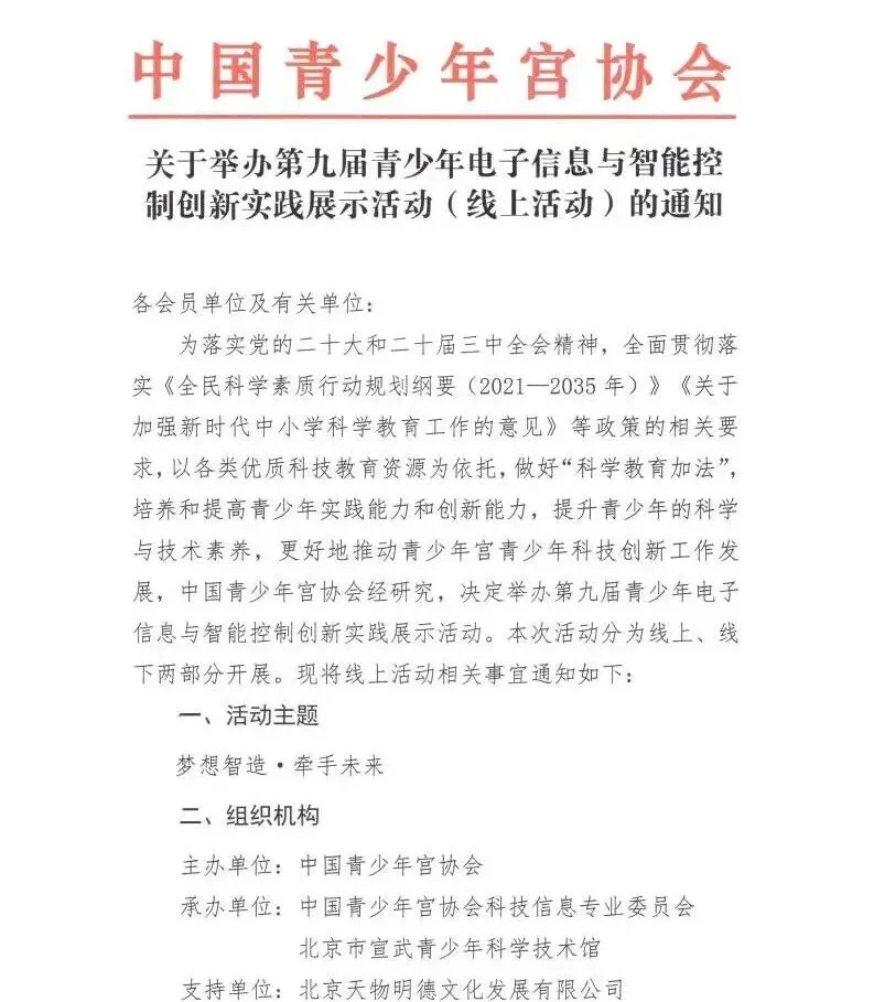 今天给大家推荐的比赛是——中国青少年宫协会主办的第九届青少年电子信息与智能控制创新实践展示活动里的编程活动—AI编程闯关挑战活动和AI创想活动,均已开放报名。