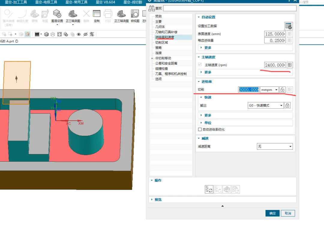 启用“拐角光顺”,降低进给率至80%