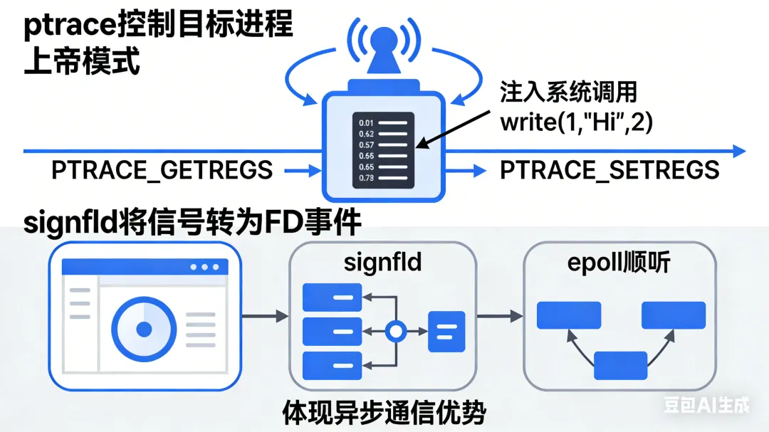 ptrace:进程的上帝模式ptrace 允许一个进程监控、控制另一个进程,是 gdb、strace 的底层基础。