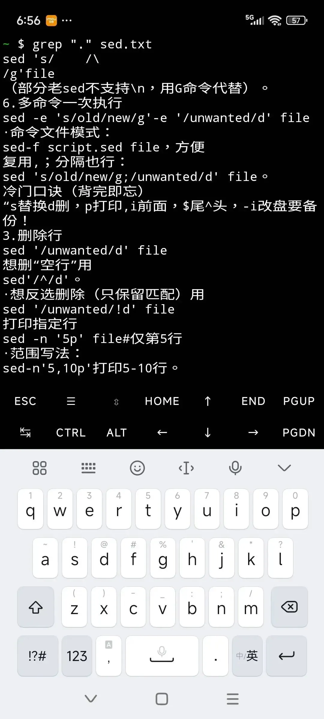 假如我們要文件sed.txt,看其行開頭是非阿拉伯數字和英文字母內容。我們寫入字符“n“,結果是這樣