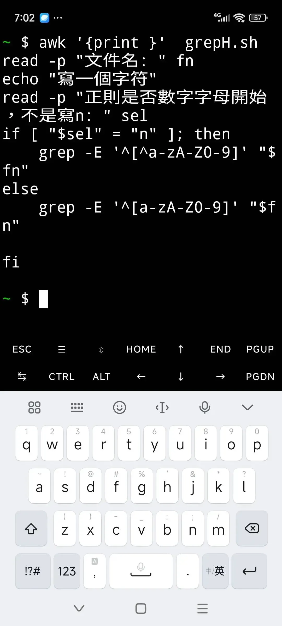 當然也可以用cat grepH.sh