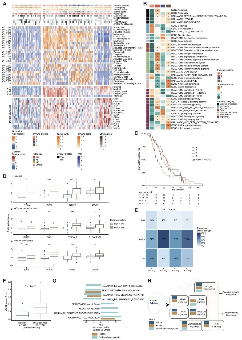 在分子分型方面,研究创新性地建立了两种临床相关的分型体系。免疫微环境分型将胆囊癌分为四种亚型,其中 18 号染色体长臂缺失与免疫抑制表型密切相关,可作为免疫治疗疗效的预测标志物;多组学分型则识别出增殖驱动型、信号驱动型、代谢驱动型和 ErbB2 驱动型四种亚型,不同亚型对应不同的治疗 vulnerabilities,如代谢驱动型对线粒体抑制剂敏感,ErbB2 驱动型可响应 ErbB2 靶向治疗联合免疫检查点抑制剂。