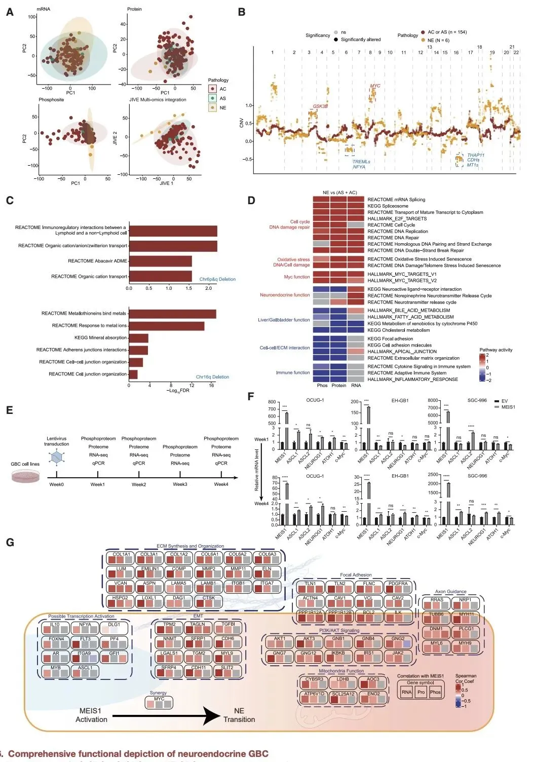 对于占比 2%-5% 的罕见亚型 —— 神经内分泌胆囊癌,研究首次揭示 MEIS1 基因是其关键调控因子。MEIS1 通过与 MYC 协同作用,诱导腺癌细胞向神经内分泌表型转化,这一发现为这类难治性肿瘤提供了潜在的干预靶点。