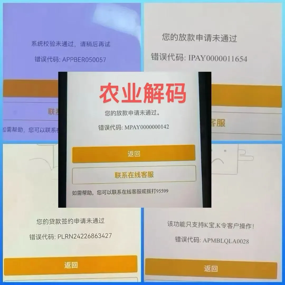 在申请农业银行贷款时,你是否遇到过系统突然弹出IPAY、MPAY、C102等神秘代码,然后申请就被无情拒绝?别着急,这些看似复杂的错误代码背后都有明确的逻辑。今天,我们就来为你一一拆解,让你下次遇到时不再迷茫!
