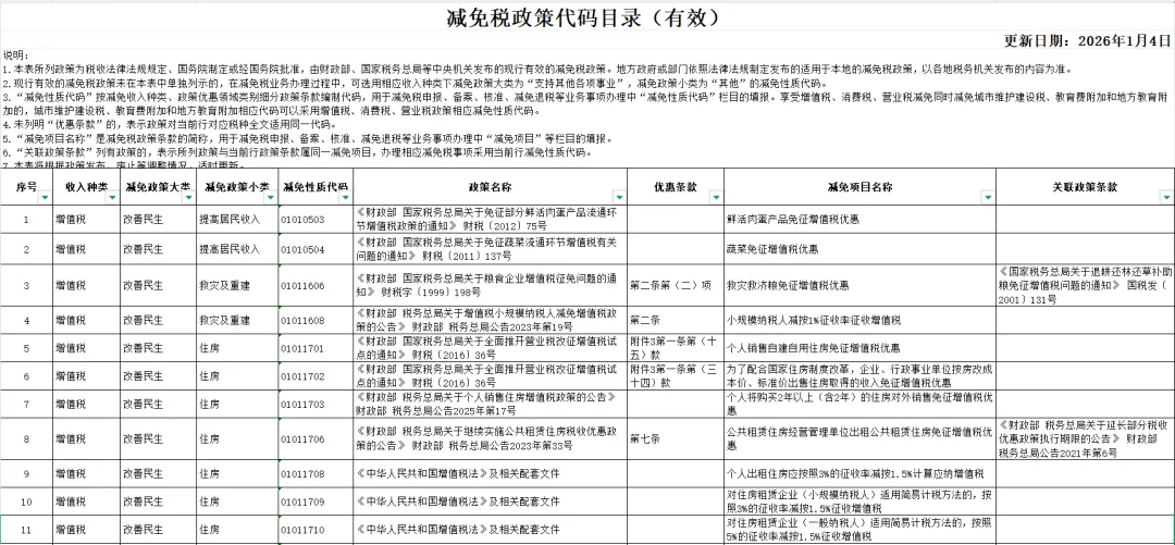 2026.1.4 国家税务总局:减免税政策代码目录(有效).xlsx
