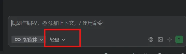 在Qoder中打开你创建的工作文件夹,然后按下Ctrl + L召唤AI聊天面板。智能体选择轻量,轻量是免费的。等遇到复杂问题再考虑付费。