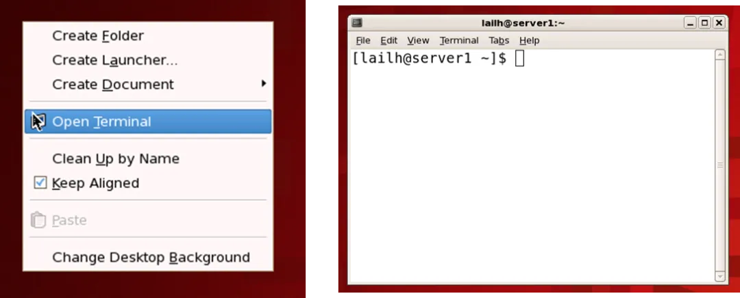 ⚫在桌面,右键快捷菜单中选择“新建终端”。