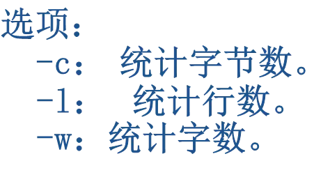 统计指定文件中的字节数、字数、行数。