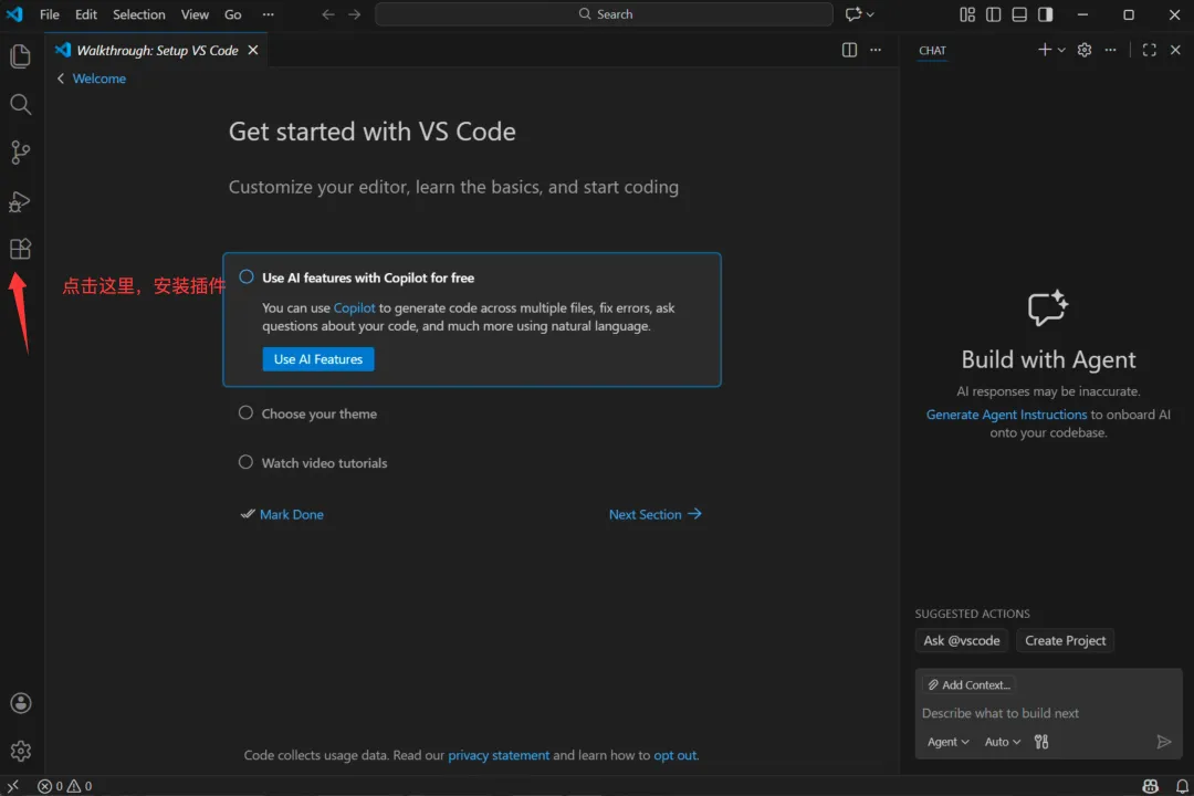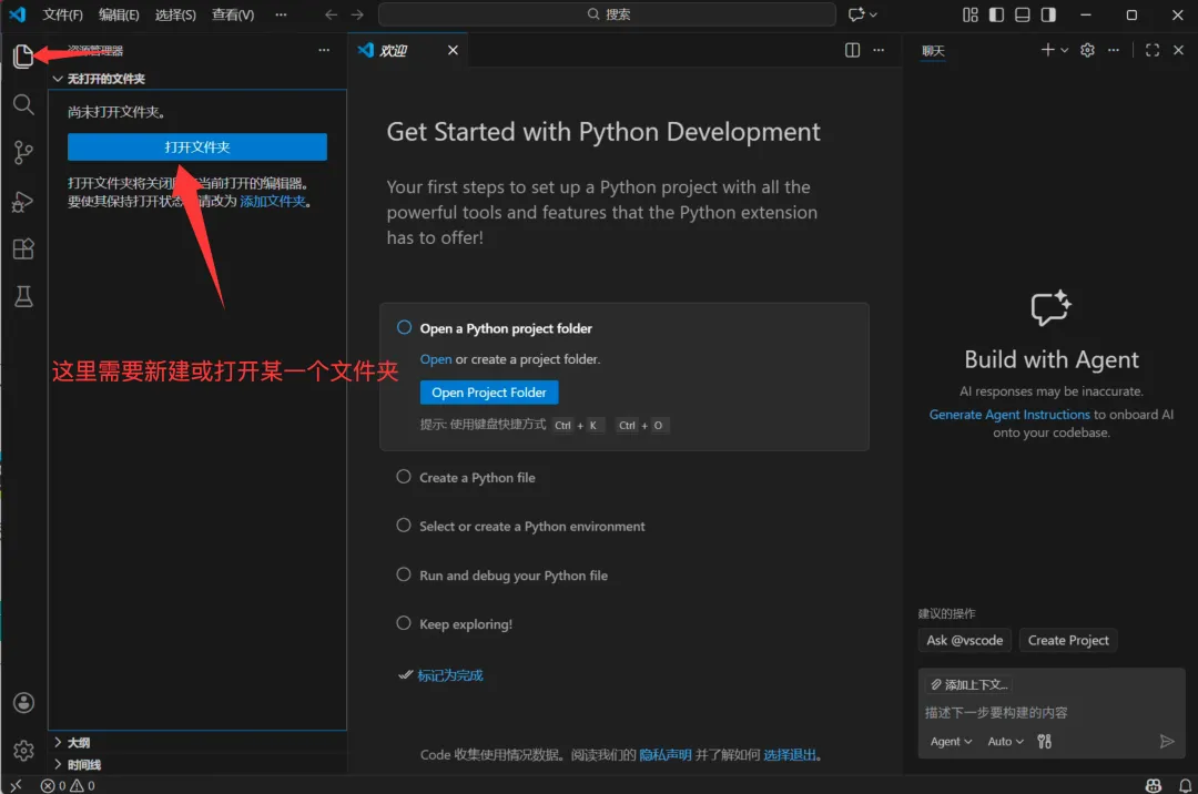 打开VSCode后: