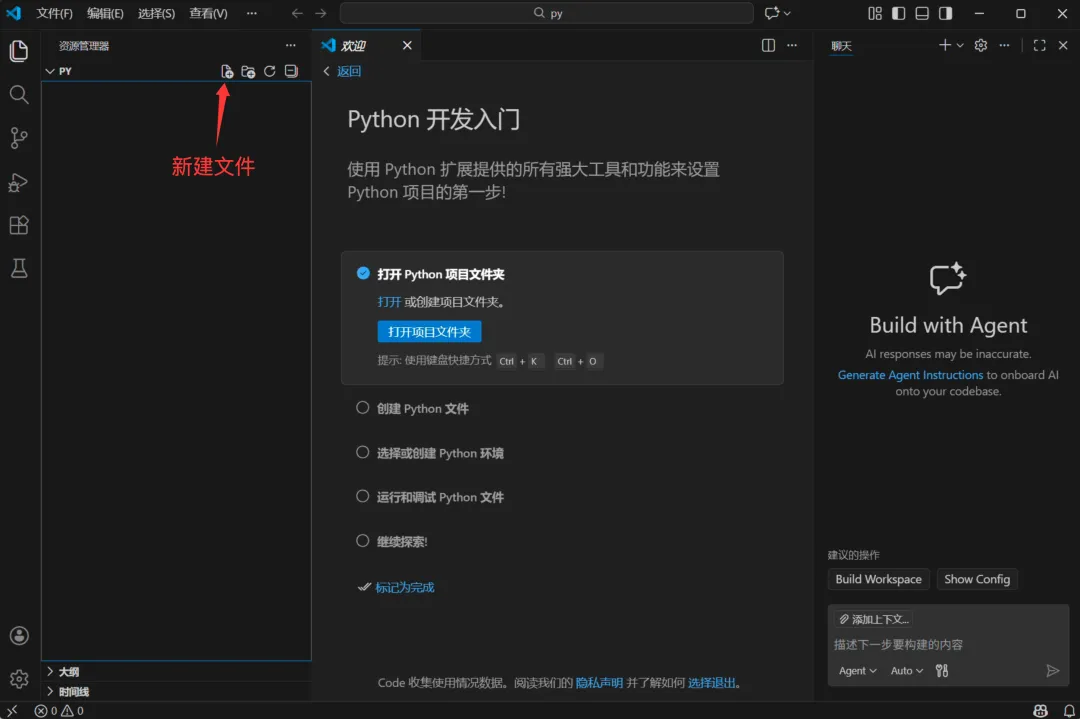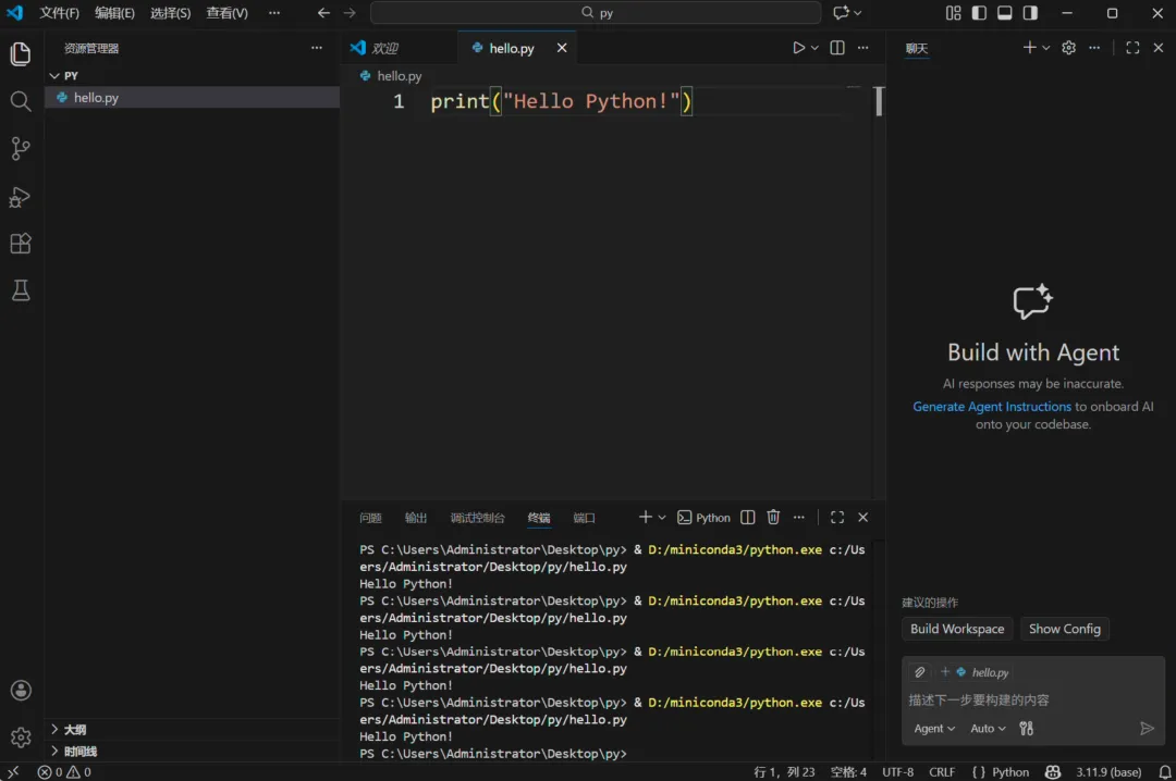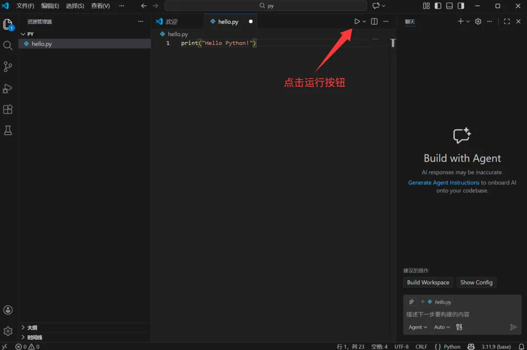 新建文件: hello.py