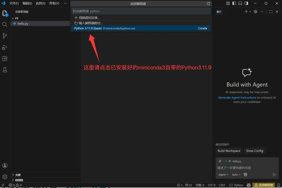 Step 3:选择Miniconda的Python解释器