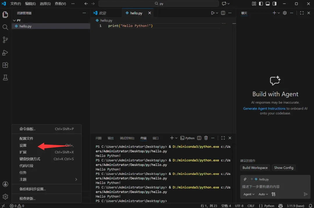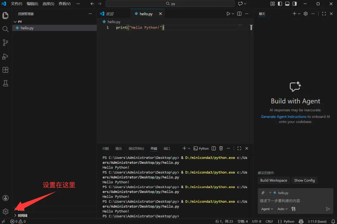 前置条件:你已经安装了Miniconda3(Python 3.11.9)