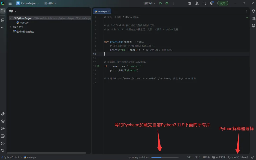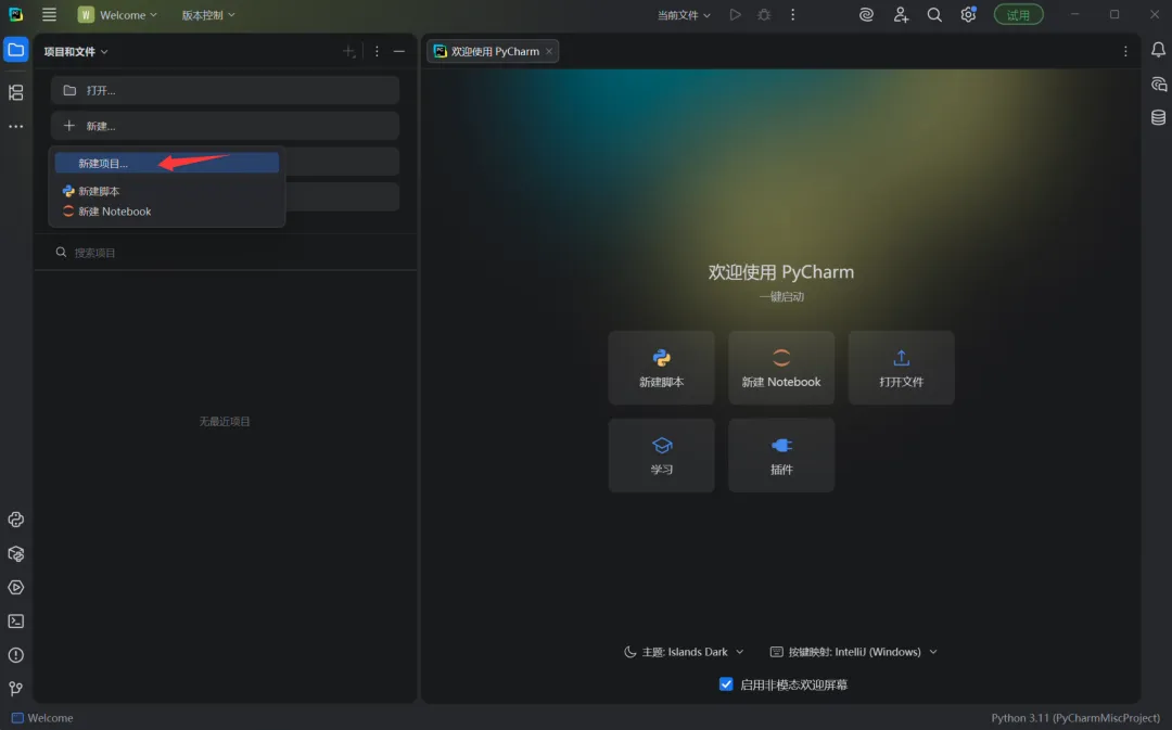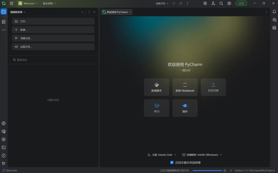 打开PyCharm后: