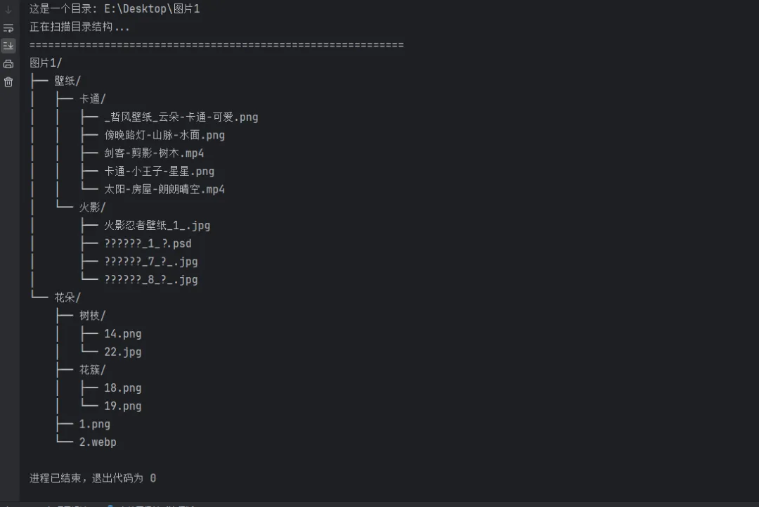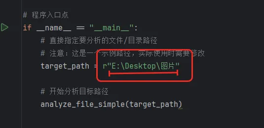 将双引号内的路径替换为你要分析的文件 / 目录路径(如r"D:\Project\"或r"D:\Project\test")