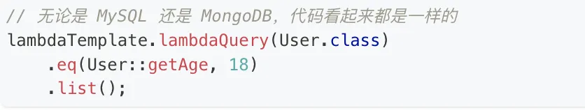 无论底层是MySQL、MongoDB还是Elasticsearch,开发者都可以使用完全一致的 API 进行数据操作。