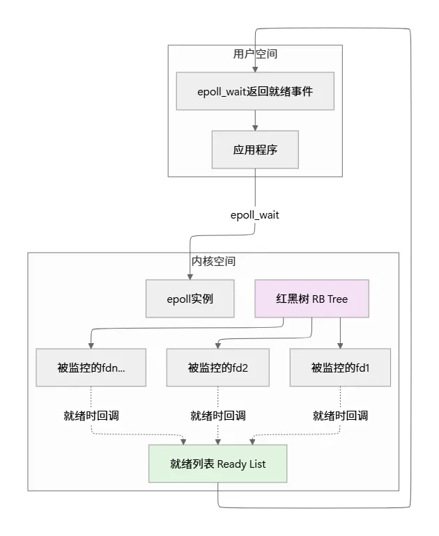 - 2. 就绪列表机制: 维护就绪fd列表, 避免遍历所有监控的fd