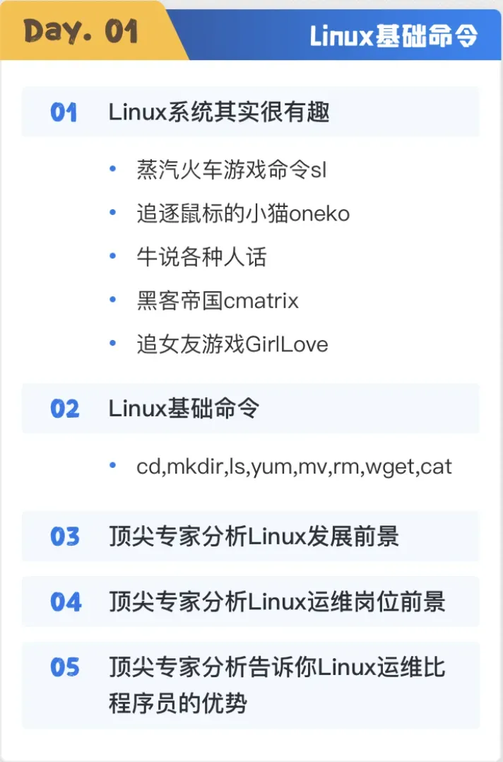为此,我推荐你参加下面这门「Linux运维5天实战训练营」通过本次训练营的学习,你将掌握:运维高薪经验分享、博客搭建、掌握必备的Linux150个命令、剖析百亿级PV网站架构等,底层理论+实战项目,干货满满!