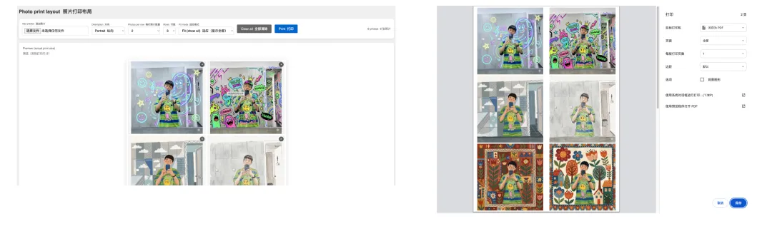 链接:https://tools.simonwillison.net/image-print这个就是为了A4纸打印照片,帮你自动布局照片位置。你还别说,这还真挺好用的。然后我用打印机测试了一下。哈哈哈哈,还是用相纸吧。5.CSS画廊样式收藏夹(CSS Grid lanes Polyfill)