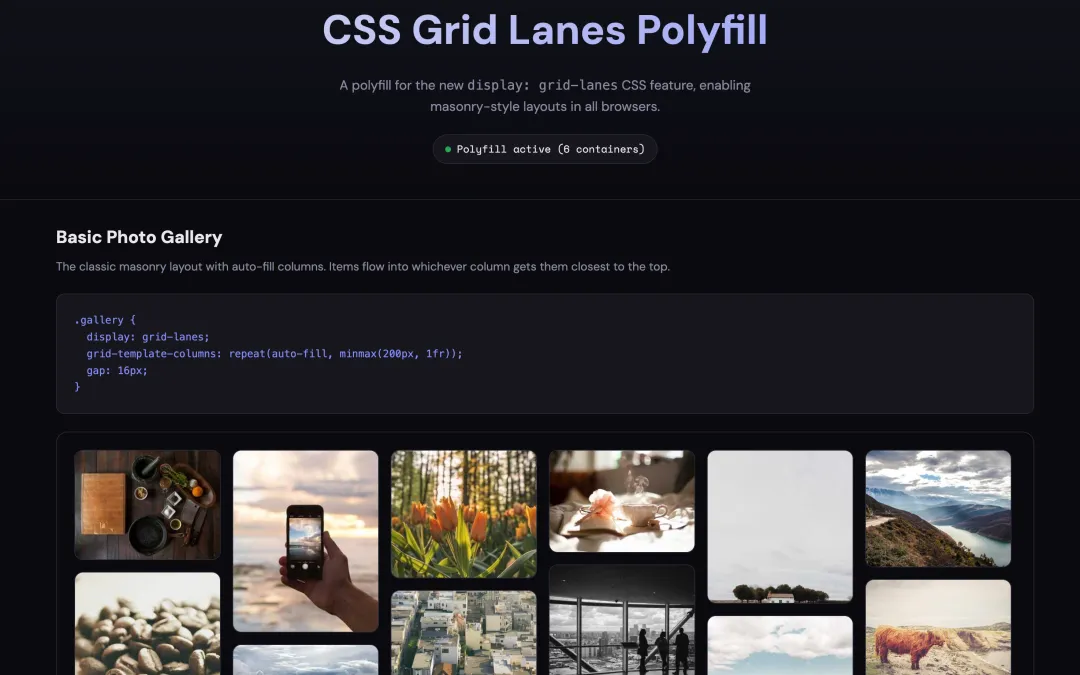 链接:https://tools.simonwillison.net/grid-lanes-polyfill这个有点像是一种skill,只不过是前端排版样式的好看版本。网页一共收录了六个好看的样式,我感觉他就是不想看CSS代码,想看呈现效果。6.同颜色色块去除器(Make Colors Transparent in PNG)