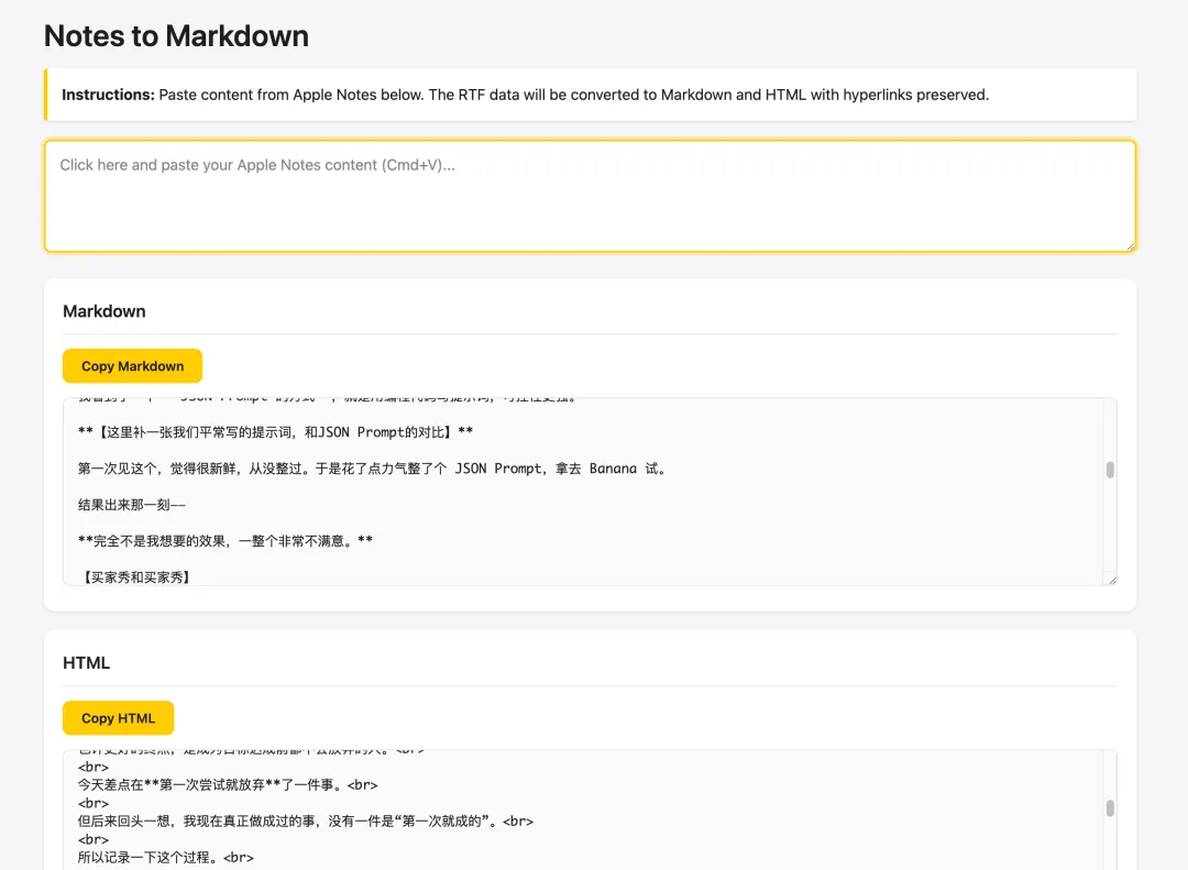 链接:https://tools.simonwillison.net/octave-explainer这个就是能听到部分钢琴声音的频率,以及为什么2:1的频率比例最好听。8.笔记变markdown/html转换器(notes to markdown)