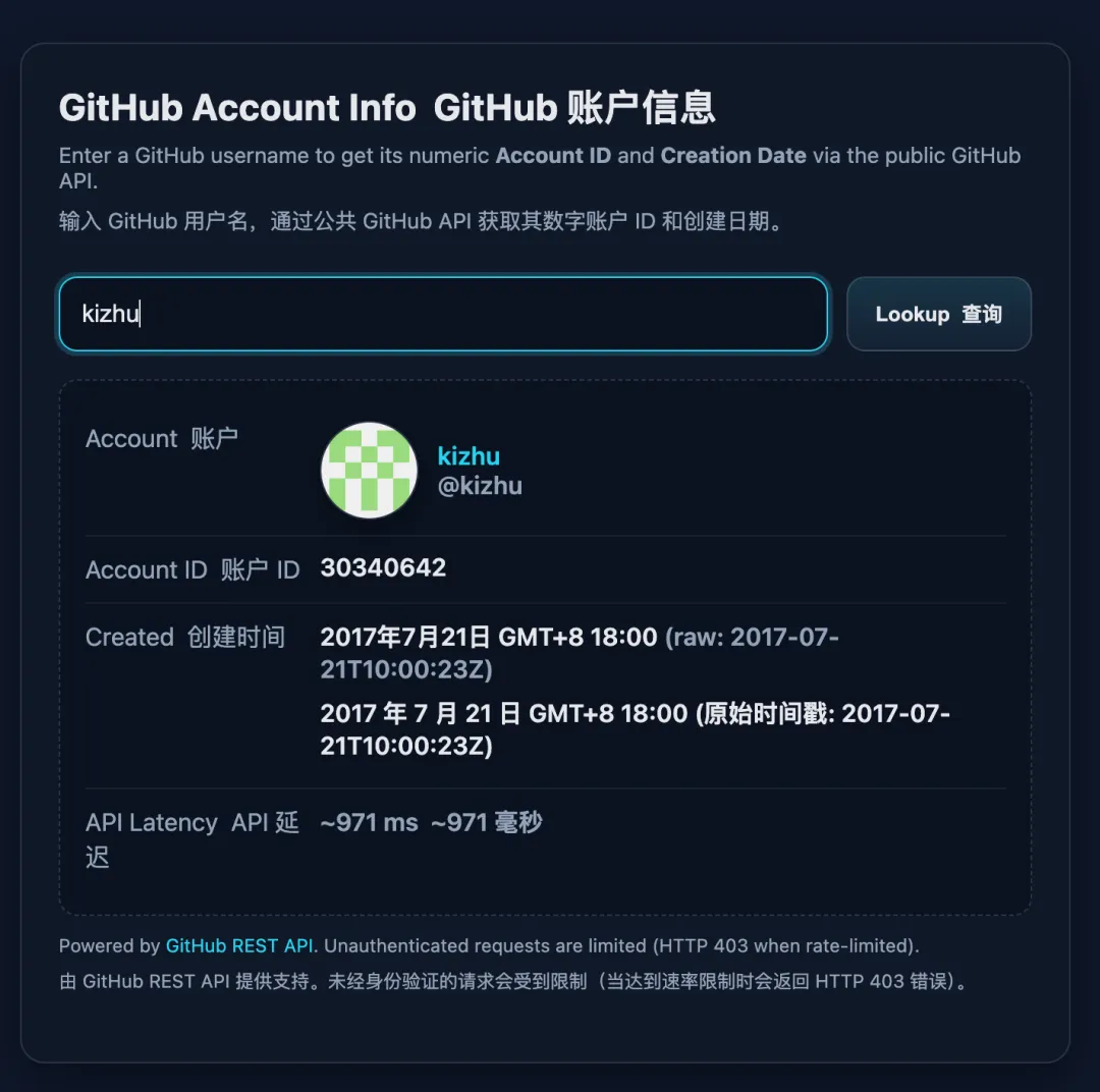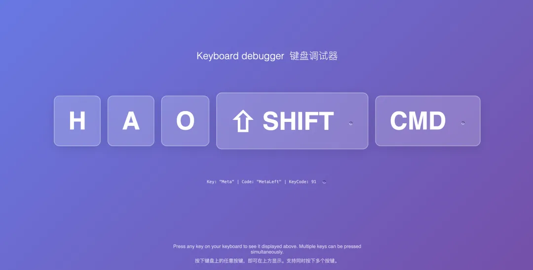 链接:https://tools.simonwillison.net/keyboard-debug就是测试一下你的键盘的按钮好不好使。交互做得还挺好。10.GitHub账户信息查询(GitHub Account Info)