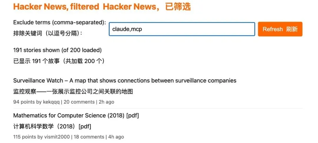 链接:https://tools.simonwillison.net/visualizer这个网页,可以听到你的声音,然后根据你的声音有一些动效。(都挺难看的,审美怪兽)而且关键是,也不帮忙录制,还得自己手动录制才能用。反正对大家没啥用。12.不看xx新闻过滤器(filtered hacker news)