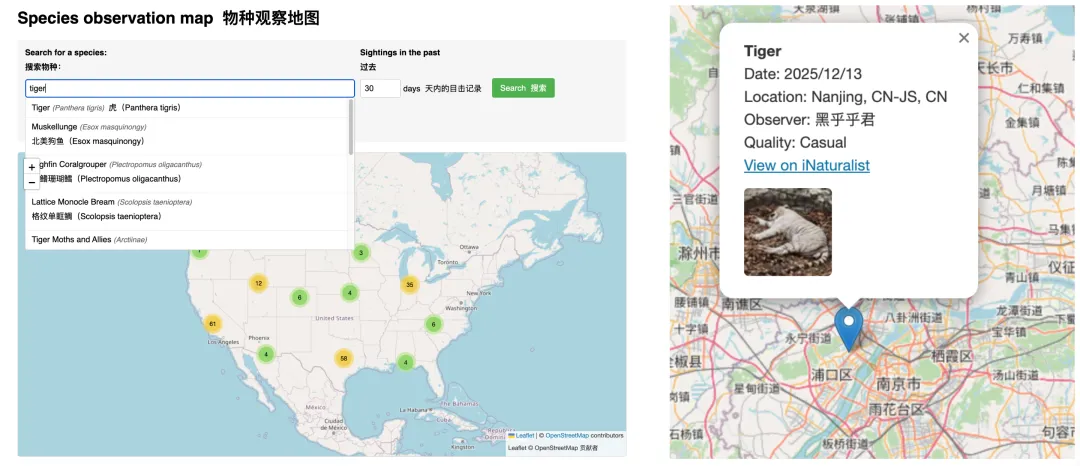链接:https://tools.simonwillison.net/species-observation-map这个挺有意思的,动物观察地图。可以看到30天内,世界上的谁观察到了什么动物。比如25年12月13日,南京有一位黑乎乎君就看到了一头老虎。不过这个数据库,应该是一个动物保护公益组织的数据,所以不是世界数据。16.大模型比分器(LLM rating)