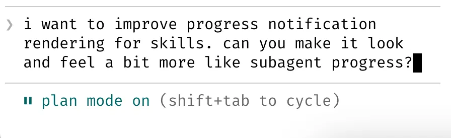 大多数会话都从计划模式(Shift+Tab 两次)开始。如果我的目标是提交一个 Pull Request,我会使用计划模式,然后和 Claude 反复沟通,直到我对计划满意为止。之后,我会切换到自动接受修改模式,Claude 通常可以一次性完成。一个好的计划真的非常重要!