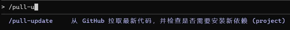 它的作用是,在终端调用斜杠命令时,显示这个命令的功能,比如:我使用/pull-update命令时,后面的文字描述就是在 md 文件中的 description 部分