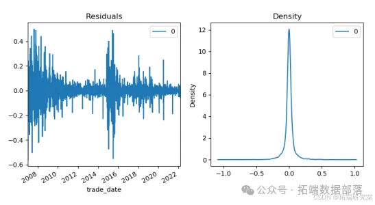 # 将ARIMA模型的拟合值转换为Series类型,并进行切片操作predictions\_ARIMA\_diff = pd.Series(model.fittedvalues, copy=True)predictions\_ARIMA\_diff = predictions\_ARIMA\_diff\[3479:\]