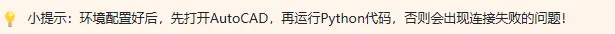 运行代码后,如果CAD底部命令行出现“Python连接CAD成功!”,就说明连接成功了。