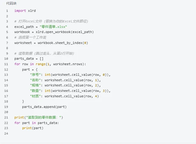 如果零件信息已经整理在Excel里,可借助xlrd/xlwt库读取Excel数据,直接批量生成明细表,不用手动输入数据。安装命令: