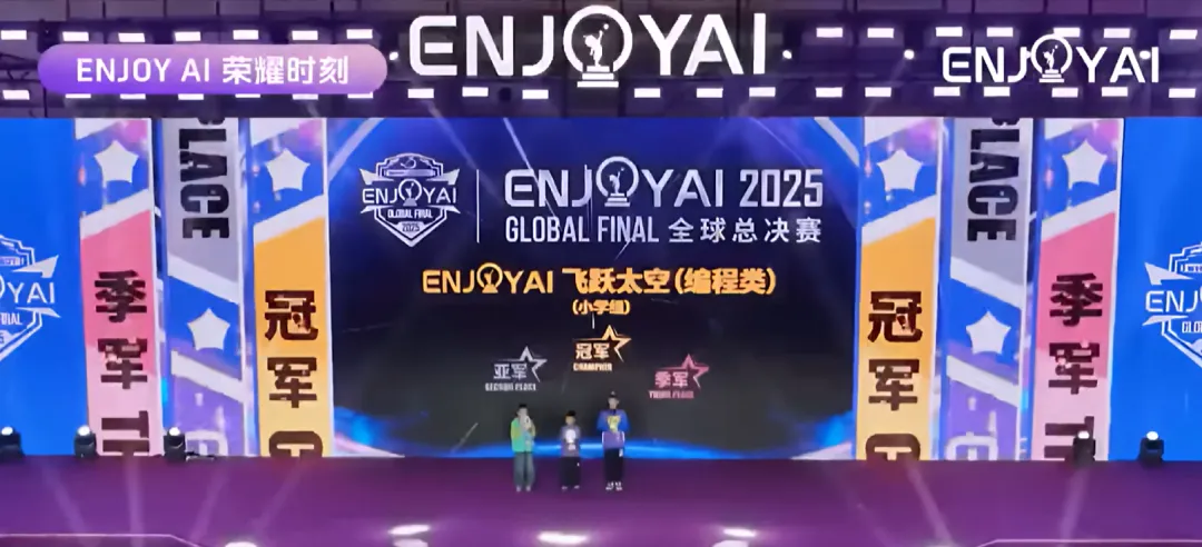 2025 Enjoy AI“飞跃太空”(编程类)小学组全球总冠军 陈勋坤:我发现编程会让数学知识动起来,比如我在编程时会主动研究速度和高度。编程反而更像是一种超级工具,让我学会拆解问题,一步一步解决它。
