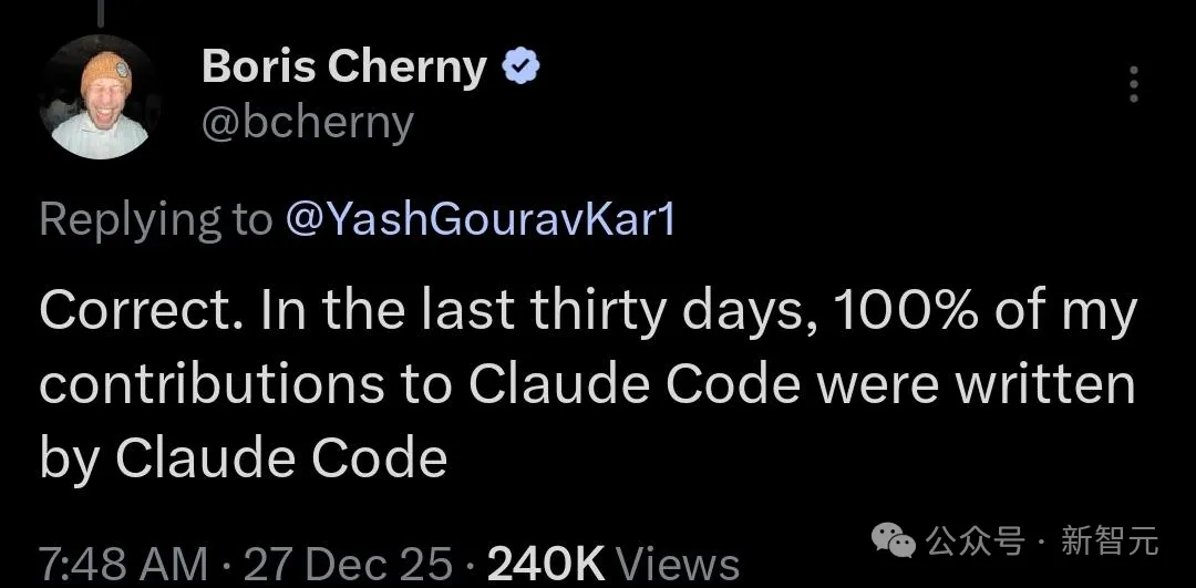 自从Claude Code之父Boris Cherny承认自己的代码100%由Claude Code写成,AI社区大为震惊:这是怎么做到的?