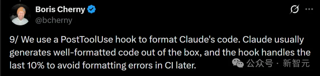 他们团队会经常使用PostToolUse hook,来对Claude生成的代码进行格式化。