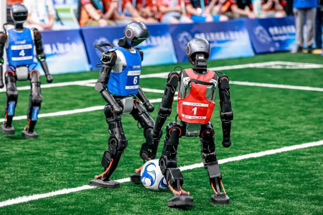 比赛过程并非一帆风顺。在完全无人干预的实时对抗中,10台全尺寸机器人的协同是巨大挑战。面对动作迟缓、决策效率低的难题,团队创新地提出了 “视觉-行为端到端”学习算法,让机器人通过视觉信号直接判断是该射门还是带球。队员们甚至为机器人设计了 “脚稍微扭向一边”的特殊步态,极大提升了射门精度。最终,凭借这套更智能、更敏捷的系统,机器人队伍在场上实现了流畅的站位、传球与攻防协同,锁定了胜局。