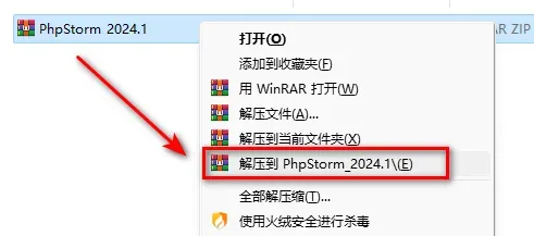 1.鼠标右键解压到“PhpStorm 2024”