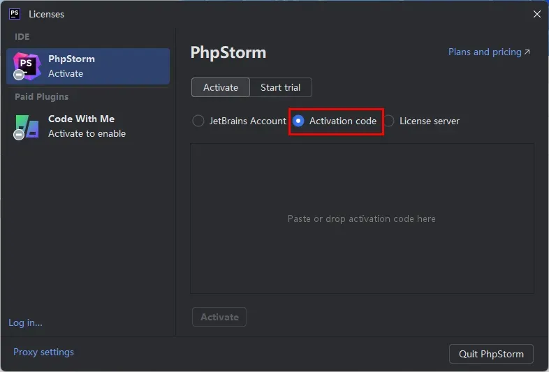19.选择“Activation code”