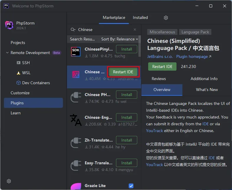 25.点击“Restart IDE”