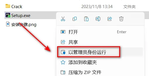 2.选中Setup,鼠标右键选择“以管理员身份运行”