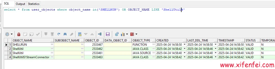 这些程序都是4月24日14:58:40-14:58:50之间创建,通过咨询客户,客户的应用在4月24日上午进行了升级.基于上述情况,初步怀疑是通过应用给数据库层面注入了恶意脚本,创建了函数和一些java包,实现提权获取了操作系统权限,然后对操作系统文件进行加密.最终结论需要等应用和安全厂商进行确认
