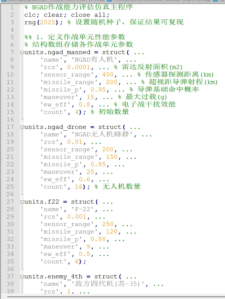 //===============================//美军 NGAD 未来作战能力评估的 MATLAB 仿真代码