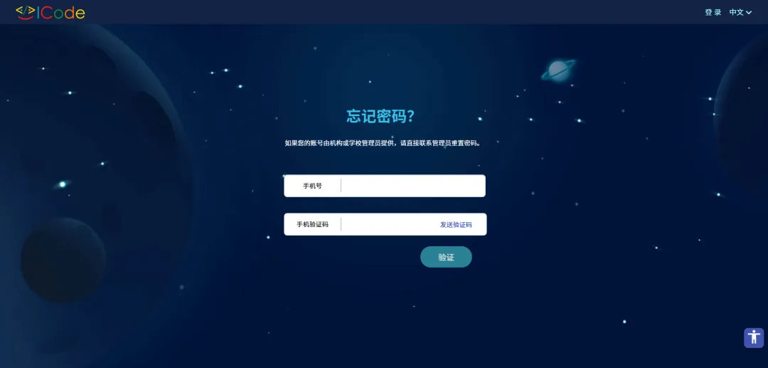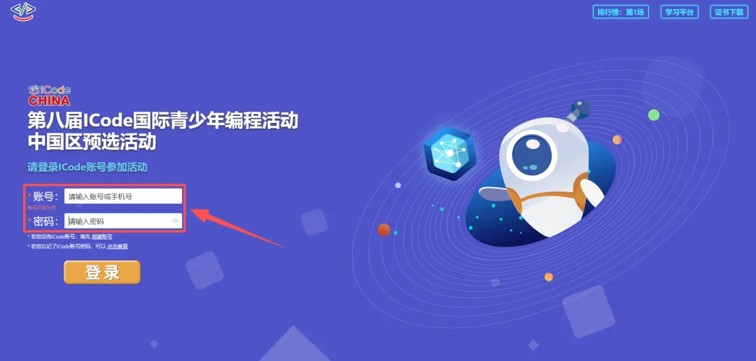 (2)已有ICode平台账号的选手,直接填写账号、密码,点击登录。