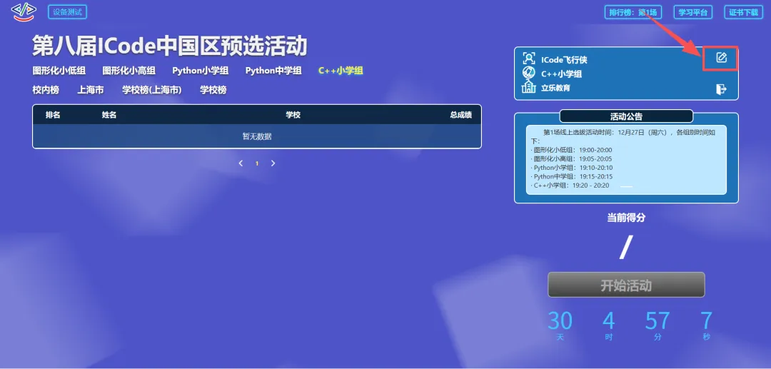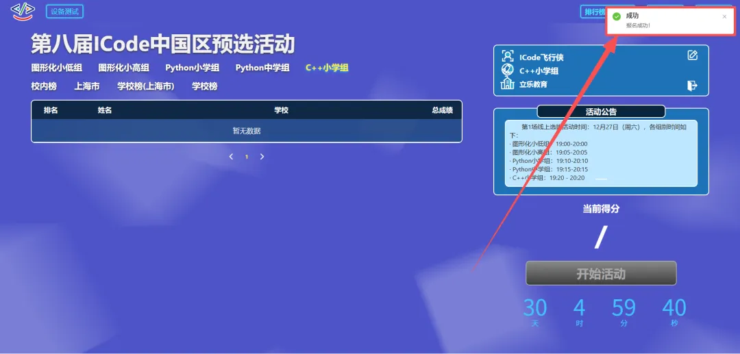 活动过程中,ICode平台上将实时公布选手的排名和分数信息,保证成绩公平公正公开。