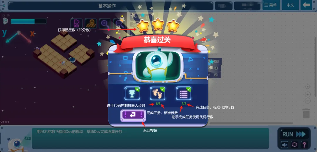 (2) 在顺利完成任务的基础上,使用的代码(积木)行数小于或等于规定值,可以额外获得1分;
